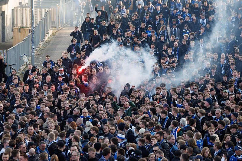 Die Partie elektrisierte Bielefeld seit Tagen. Mit einem großen Fanmarsch und viel Pyrotechnik stimmten sich die Fans auf den Abend ein. Sie zogen an üppig mit Fahnen und Schals geschmückten Häusern vorbei. Sowohl die Bielefelder als auch die Leverkusener Anhänger empfingen die Mannschaften mit großen Choreografien.