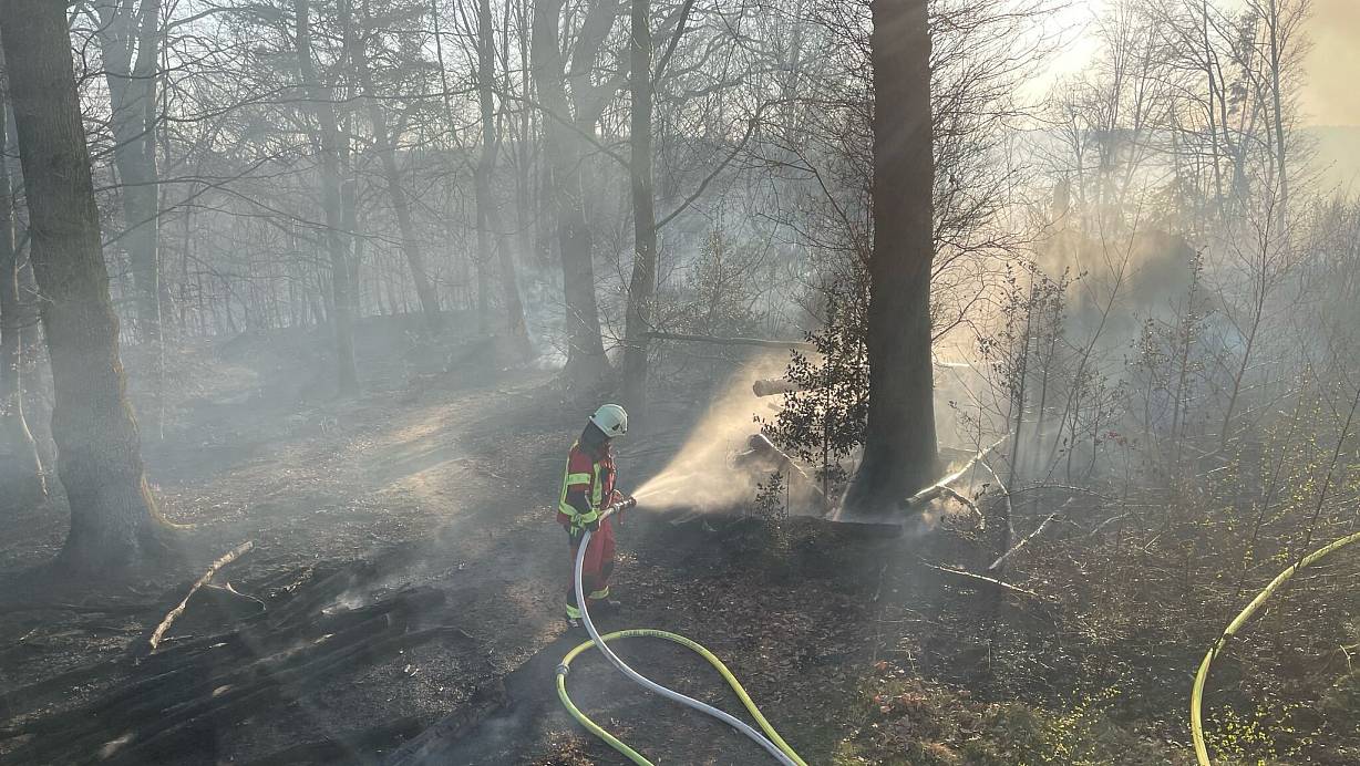 Rund 350 Kräfte sind bei einem Waldbrand im Rheinisch-Bergischen Kreis im Einsatz gewesen. Feuerwehrangaben zufolge brannte am Donnerstagabend eine Fläche von etwa 50.000 Quadratmeter bei Overath. Wegen der Windverhältnisse sowie der Hanglage und der Beschaffenheit des Bodens drohten die Flammen, sich auszubreiten. Daraufhin wurde laut Feuerwehr ein Pendelverkehr mit Tanklöschfahrzeugen eingerichtet. Auch ein Polizeihubschrauber samt Wasserbehälter war im Einsatz. Zur Schadenshöhe lagen zunächst keine Informationen vor. Die Polizei ermittelt zur Ursache.