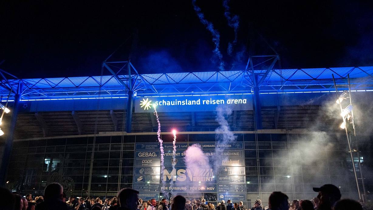 Noch vor Mitternacht wurde am Freitag in der Duisburger Arena das Licht eingeschaltet. Tausende Fans des MSV Duisburg waren zur spontanen Aufstiegsfeier des Traditionsclubs gekommen und feierten ihre Mannschaft, die sich nach dem 1:0-Sieg bei Borussia Mönchengladbachs Regionalliga-Elf den vorzeitigen Aufstieg in die 3. Liga sicherte. Mit Bierfontänen, Feuerwerk und gemeinsamen Gesängen bejubelten die Anhänger den frühzeitigen Erfolg der Mannschaft, die sich später noch zu einer internen Party zurückzog.