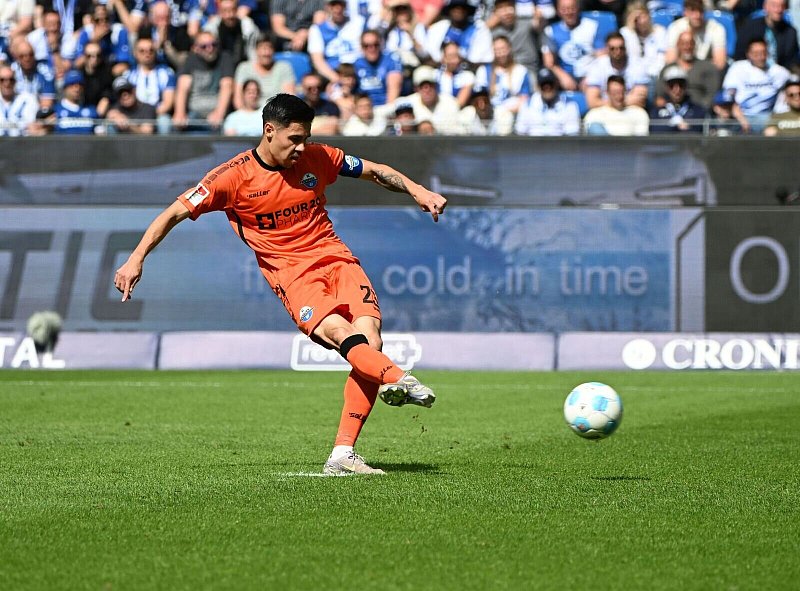 Der Kapitän scheiterte in der 37. Minute aber per Foulelfmeter an KSC-Torwart Max Weiß. Dem Pfiff von Referee Deniz Aytekin war ein rustikaler Körpereinsatz von Karlsruhes Christoph Kobald gegen Ilyas Ansah vorausgegangen.