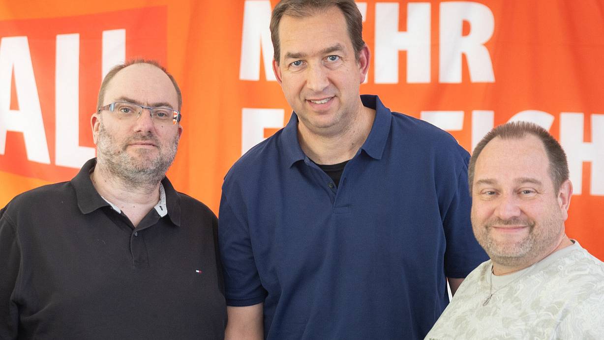 Guido Heyer (v. l.), Betriebsratsvorsitzender von Benteler in Bielefeld, Stefan Chatziparaskewas, Rechtsanwalt, und Jens Engelbrecht, Gewerkschaftssekretär, erheben Vorwürfe gegen Benteler. | © Oliver Krato