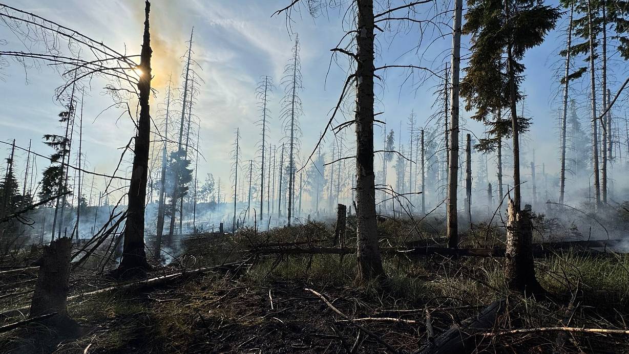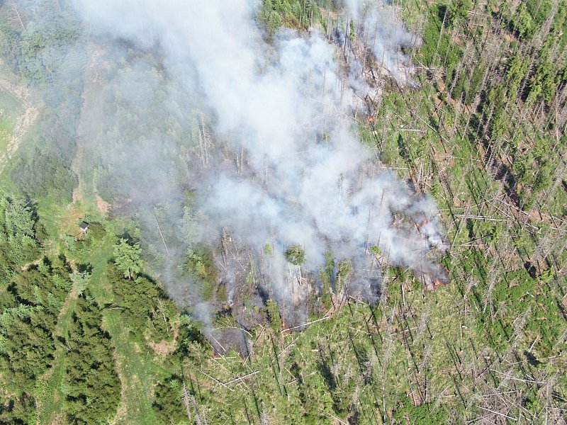 Ausgebrochen war das Feuer in einem geschädigten Waldgebiet, einer sogenannten Kalamitätsfläche mit Totholz. Zwischenzeitlich war auch ein Hubschrauber der Polizei an den Löscharbeiten beteiligt.