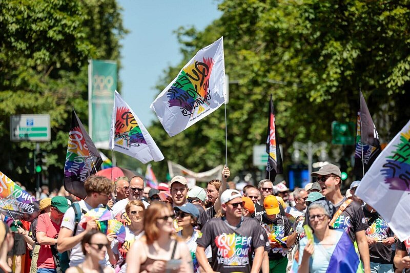Bei Temperaturen um die 30 Grad hatten viele Menschen regenbogenfarbene Fächer mitgebracht, einige auch Schirme in den bunten CSD-Farben. Mehr als 50 Gruppen hatten sich zu der Demo angemeldet. Darunter waren auch Vertreterinnen und Vertreter verschiedener Parteien, der «Omas gegen Rechts» und der schwul-lesbischen Karnevalsgesellschaft KG Regenbogen.