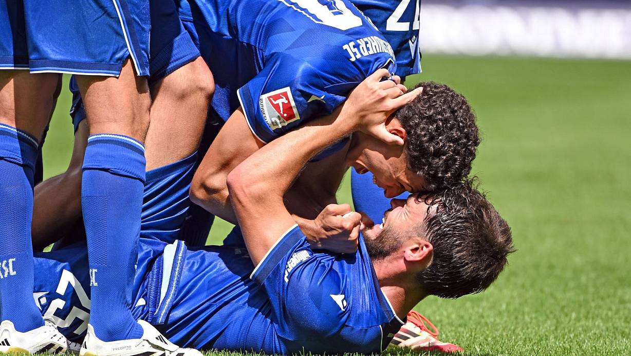 In einem unterhaltsamen Spiel hat der Karlsruher SC am Ende doch noch einen erfolgreichen Auftakt in die neue Saison der 2. Fußball-Bundesliga geschafft und Gäste-Trainer Alexander Ende das Pflichtspieldebüt mit Münster verdorben. Der KSC setzte sich nach einem Traumstart und einem späten Ausgleich doch noch mit 3:2 (2:1) gegen den SC Preußen Münster durch.