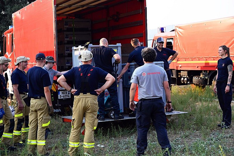 Mit 23 Fahrzeugen trafen die Deutschen am Dienstagabend ein. Auf einem Fußballplatz sowie in einer Sporthalle der Ortschaft Aldeanueva del Camino richteten sie ihr Lager ein. Ganz in der Nähe, in Jarilla, wütet einer der größten der zahlreichen Waldbrände, die Spanien seit zwei Wochen in Atem halten. Rund 15.000 Hektar verbrannten dort bereits. Die Luft ist voller Rauch, Löschflugzeuge sind permanent zu sehen und zu hören.