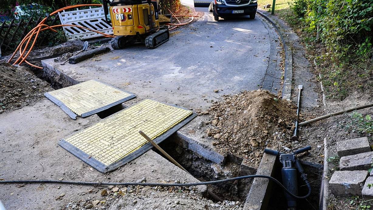 Beim Verlegen von Glasfaserkabeln soll der Arbeiter mit einem Presslufthammer ein 10.000-Volt-Mittelspannungskabel beschädigt haben. Der Verletzte wurde mit einem Rettungshubschrauber in eine Spezialklinik gebracht.