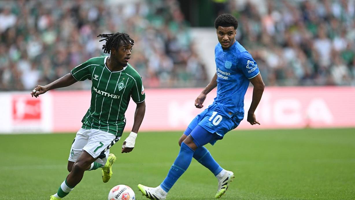 Abgesehen von zwei Schüssen von Justin Njinmah (14.) und Aushilfs-Mittelstürmer Marco Grüll (18.) kam Werder kaum einmal zu Chancen. Turbulent wurde es erst in der Nachspielzeit der ersten Halbzeit. Zunächst traf Leverkusens Christian Kofane nach dem nächsten Coulibaly-Fehler nur die Latte (45.+1). Danach hatte der Österreicher Grüll sogar noch zwei gute Möglichkeiten (45.+7/45.+8).