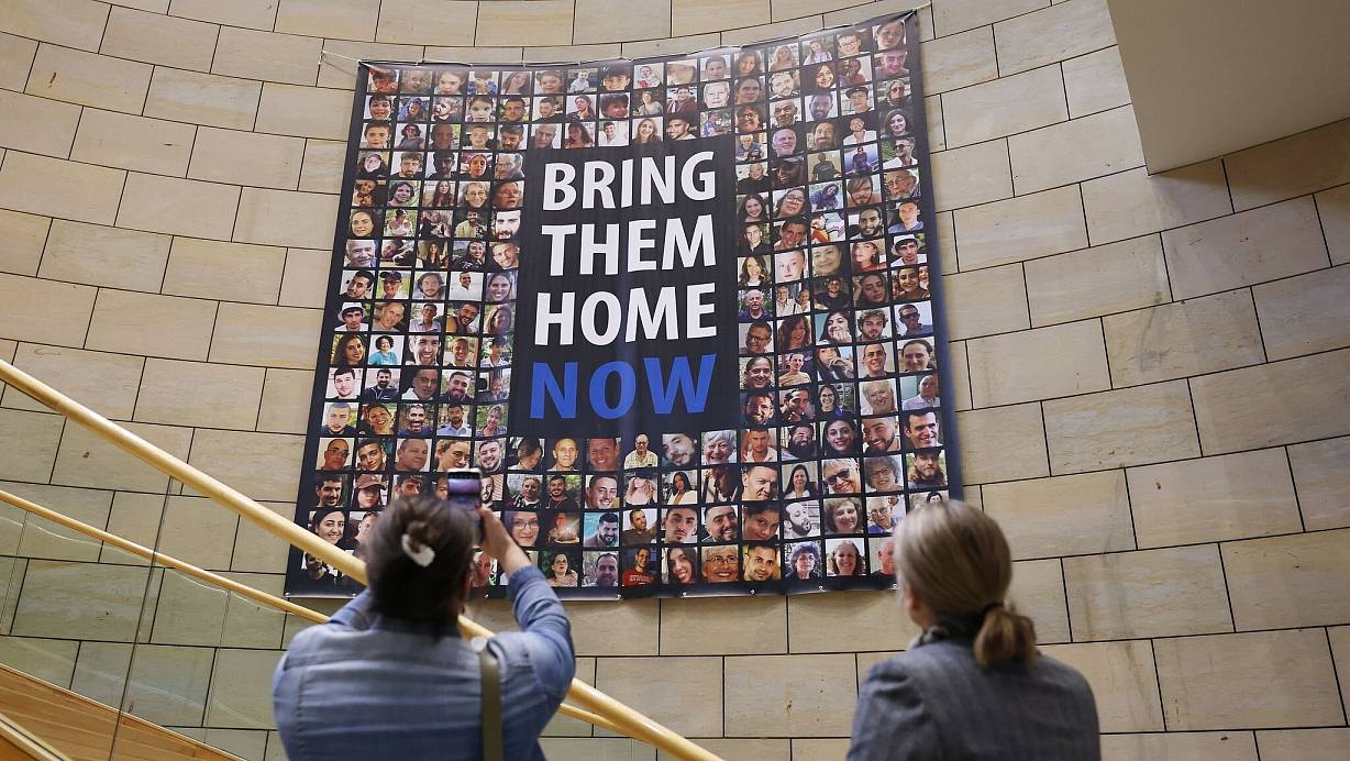 Im Landtag Nordrhein-Westfalen hängt seit November 2023 ein Banner mit Fotos der Hamas-Geiseln und der Aufschrift «Bring them home now» in den Farben der israelischen Flagge. Es ist in Zusammenarbeit mit der jüdischen Gemeinde Düsseldorf entstanden.