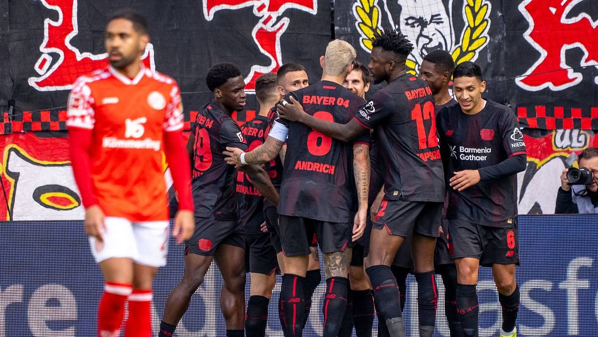 Vor 33.305 Zuschauern in der ausverkauften Mainzer Arena sorgten der Spanier Grimaldo (11. Minute/Foulelfmeter und 45.+3), der neue Torjäger Christian Kofane aus Kamerun (24.) und Martin Terrier (87.) für die Treffer der Gäste. Der Franzose freute sich neun Monate nach seinem Achillessehnenriss über ein gelungenes Joker-Comeback und das späte Tor.