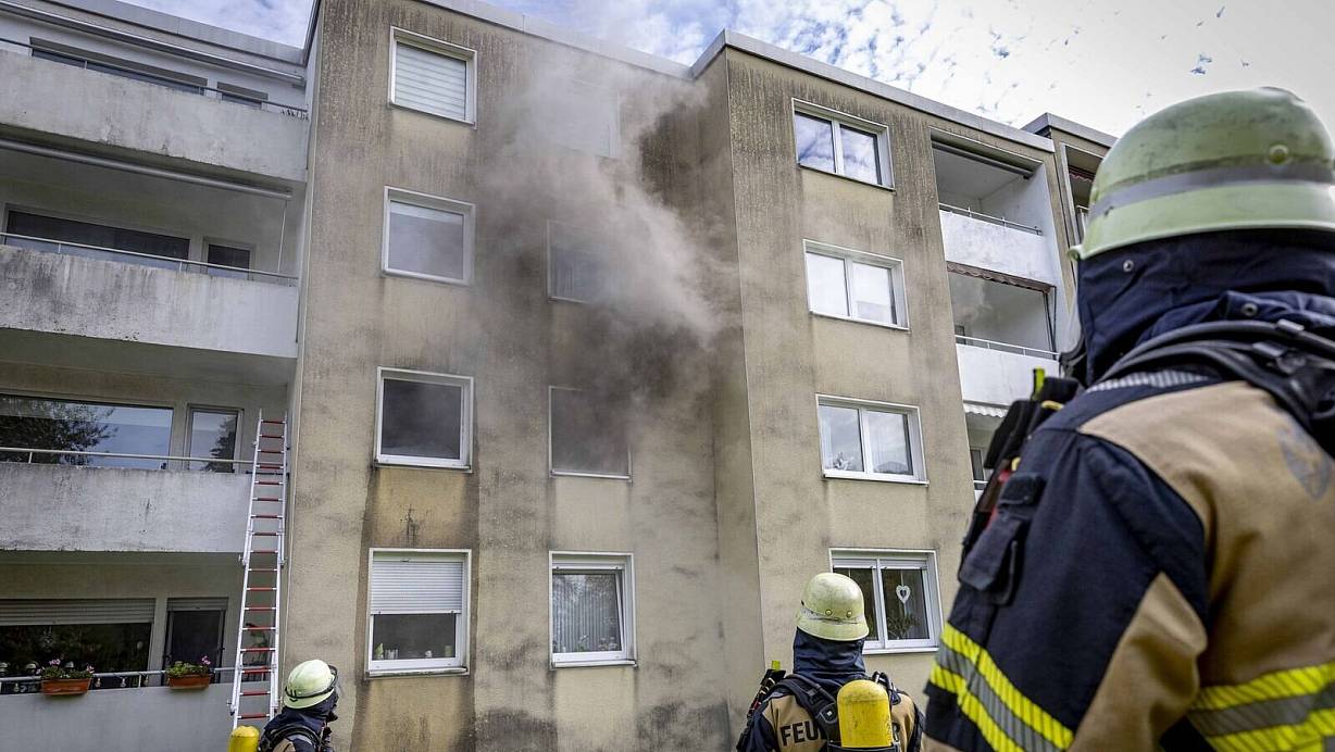 Bei einem Wohnungsbrand in Essen hat die Feuerwehr ein Ehepaar über eine Leiter von einem Balkon gerettet. Nach ersten Erkenntnissen der Feuerwehr waren in der Wohnung Lithium-Ionen-Akkus von Fahrrädern beim Laden in Brand geraten. Beide Bewohner erlitten eine Rauchgasvergiftung und kamen laut Feuerwehrsprecher leicht verletzt ins Krankenhaus.