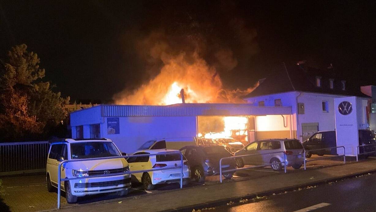 Das Feuer war laut Mitteilung am frühen Dienstagmorgen in der Werkstatt ausgebrochen, dann schlugen die Flammen auf das Autohaus über. Der Werkstattbereich sei vollständig ausgebrannt. Im Verkaufsgebäude brenne es jedoch weiterhin. Große Mengen Löschwasser werden den Angaben zufolge aus der Ruhr zur Einsatzstelle befördert. Zur Erkundung des Brandes sei eine Drohne im Einsatz.