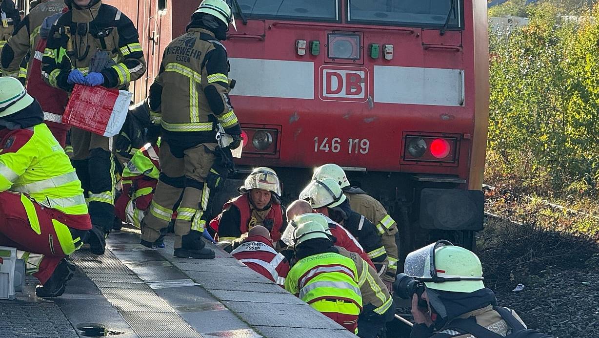 Einsatzkräfte bergen den Verletzten - ein Mann ist in Essen auf Gleis gestürzt und von einem Zug erfasst worden. | © Stephan Witte/dpa