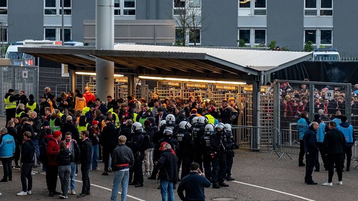 Auch ein Shuttlebus für anreisende Gästefans zum Stadion wurde in Mitleidenschaft gezogen. Die Polizei leitete daraufhin Strafverfahren gegen zwei Tatverdächtige ein. Ein Mann wurde in Gewahrsam genommen, weil er einem Beamten auf den Helm geschlagen hatte.