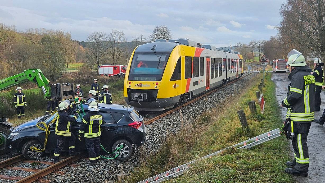 An einem unbeschrankten Bahnübergang bei Erndtebrück (Kreis Siegen-Wittgenstein) ist ein Regionalzug mit einem Auto zusammengestoßen. Dabei sei der 19 Jahre alte Fahrer des Wagens verletzt worden, teilte die Polizei mit. Er sei in ein Krankenhaus gebracht worden. Nach ersten Erkenntnissen wurde das Auto rund 200 Meter vom Zug mitgeschleift.
