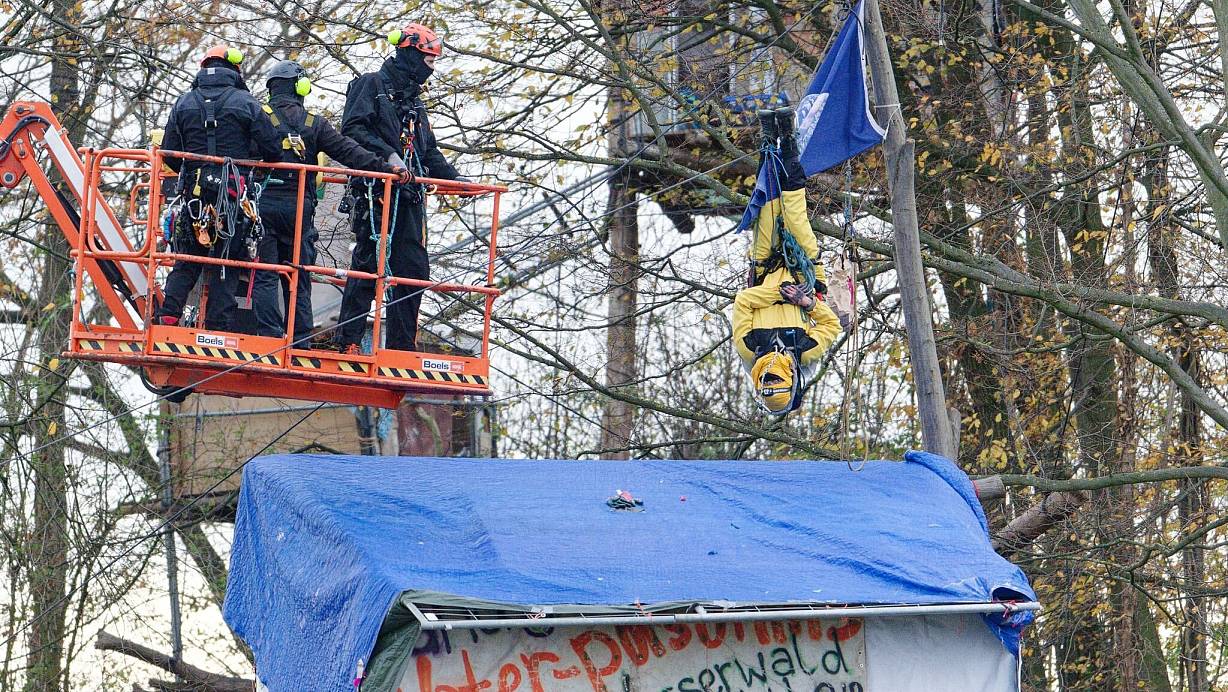 Insgesamt sind bei dem Einsatz im Bereich des Manheimer Erbwaldes bei Kerpen unweit von Köln laut Polizei 18 Personen von Beamten aus dem Wald begleitet worden. Neben den 15 Personen, die in Gewahrsam genommen wurden, hätten drei Personen einen Platzverweis bekommen und seien nach der Identitätsfeststellung entlassen worden, teilte die Polizei weiter mit.