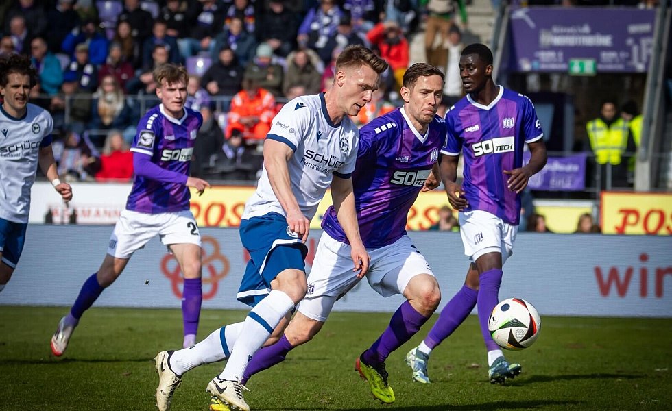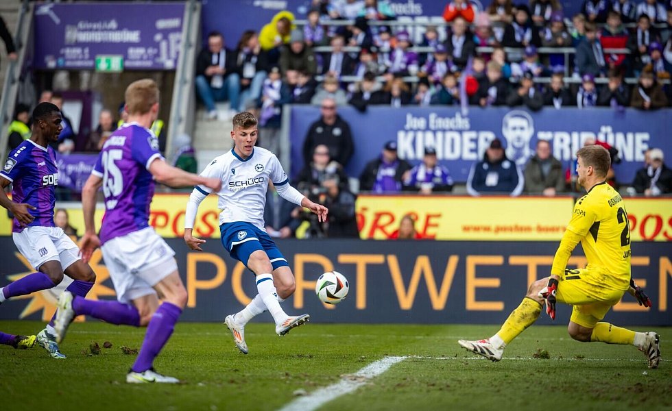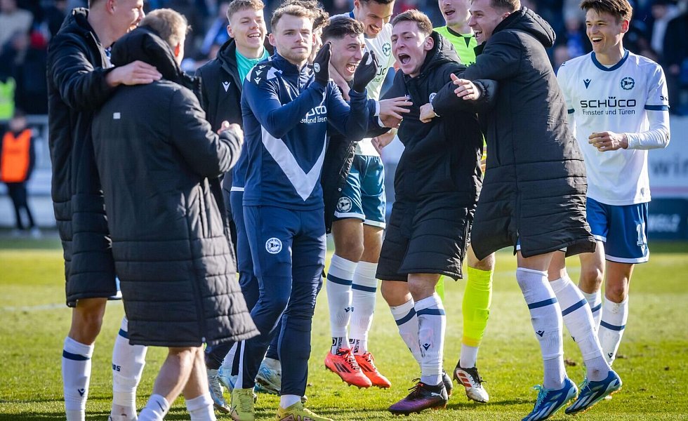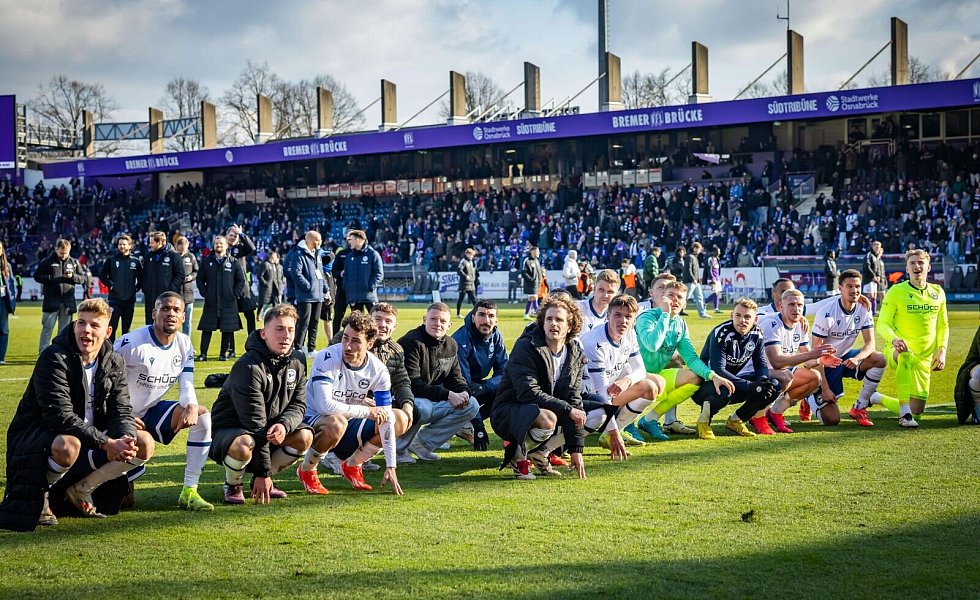 Doch Arminia hielt auch in der sechsminütigen Nachspielzeit, in der der Osnabrücker Marcus Müller mit Gelb-Rot vom Platz flog, stand und feierte den fünften Sieg aus den vergangenen sechs Ligaspielen. Da parallel Spitzenreiter Dynamo Dresden nicht über ein 1:1 bei Rot-Weiss Essen hinauskam, rückt der DSC dem Spitzenduo gewaltig auf die Pelle. Darüber freuen können sich die Bielefelder allerdings nur kurz. Bereits am Mittwoch (19 Uhr) müssen die Arminen wieder ran. Dann steht das Halbfinale im Westfalenpokal in Siegen an. In der Liga geht es am Samstag, 29. März (14 Uhr), mit dem Heimspiel gegen Hannover 96 II weiter.
