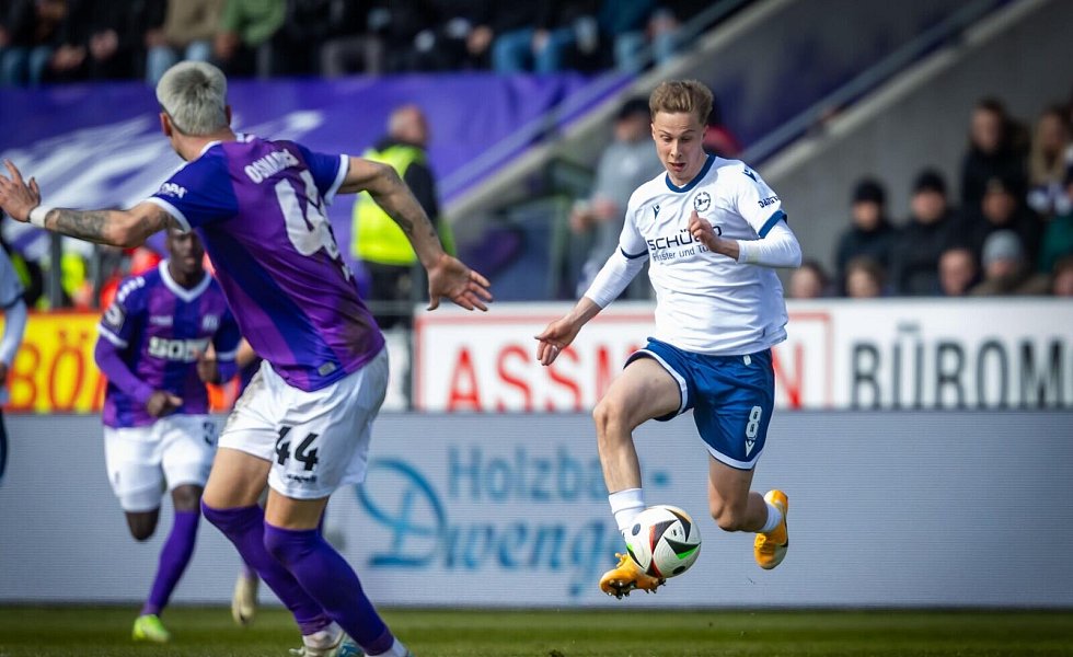 Im mit 15.689 Zuschauern ausverkaufen Stadion an der Bremer Brücke entwickelte sich vom Anpfiff an eine intensive Partie mit leichten Vorteilen für die Ostwestfalen. In der sechsten Minute scheiterte zunächst Leon Schneider mit seinem Kopfball am gut reagierenden VfL-Schlussmann Lukas Jonsson. Der Nachschuss von Marius Wörl wurde geblockt. Wenige Augenblicke später setzte der Mittelfeldspieler, der für den anstehenden Lehrgang der U20-Nationalmannschaft nominiert wurde, seinen Schuss im Anschluss an eine Freistoßvariante links neben das Tor (7.).