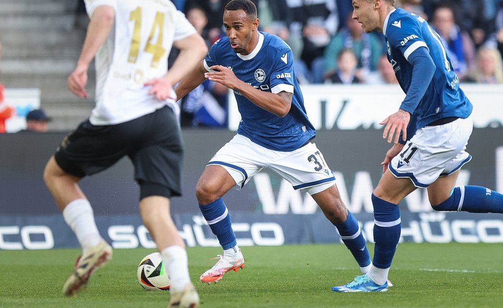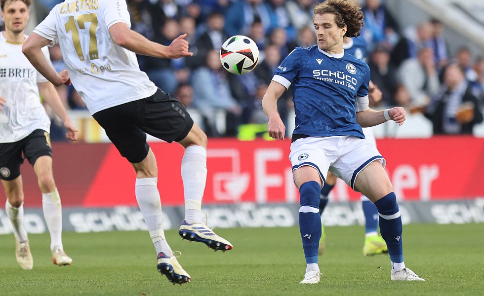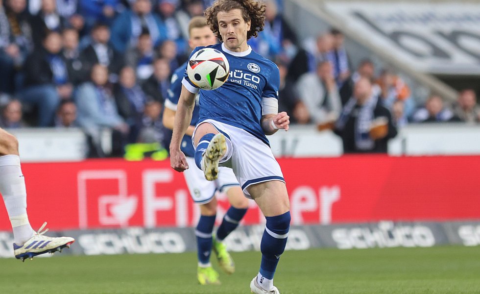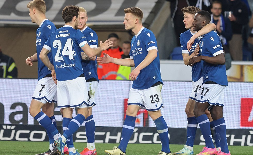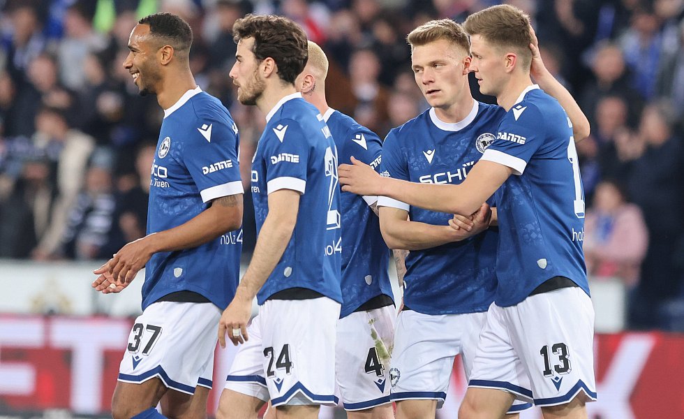 Die 19.191 Zuschauer in der Schüco-Arena hatten kaum Platz genommen, da gingen die Hausherren bereits in Front – unter tatkräftiger Mithilfe des Gegners. Eine Flanke von Christopher Lannert hätte der Wiesbadener Thijmen Goppel überall hin klären können, doch der Niederländer beförderte den Ball unglücklich zur 1:0 Führung ins eigene Tor (2.). Der Traumstart für Arminia.