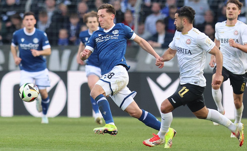 An diesem Abend, so schien es, konnten sich die Arminen gegen in der Anfangsphase vollkommen indisponierte Wiesbadener nur selbst schlagen. Doch wie schnell es gehen kann, verdeutlichte die 15. Minute. Arminia-Verteidiger Maximilian Großer leistete sich einen leichtsinnigen Ballverlust am eigenen Strafraum. Die Einladung ließ sich Nikolas Agrafiotis nicht entgehen, blieb vor Jonas Kersken cool und verkürzte auf 1:2.