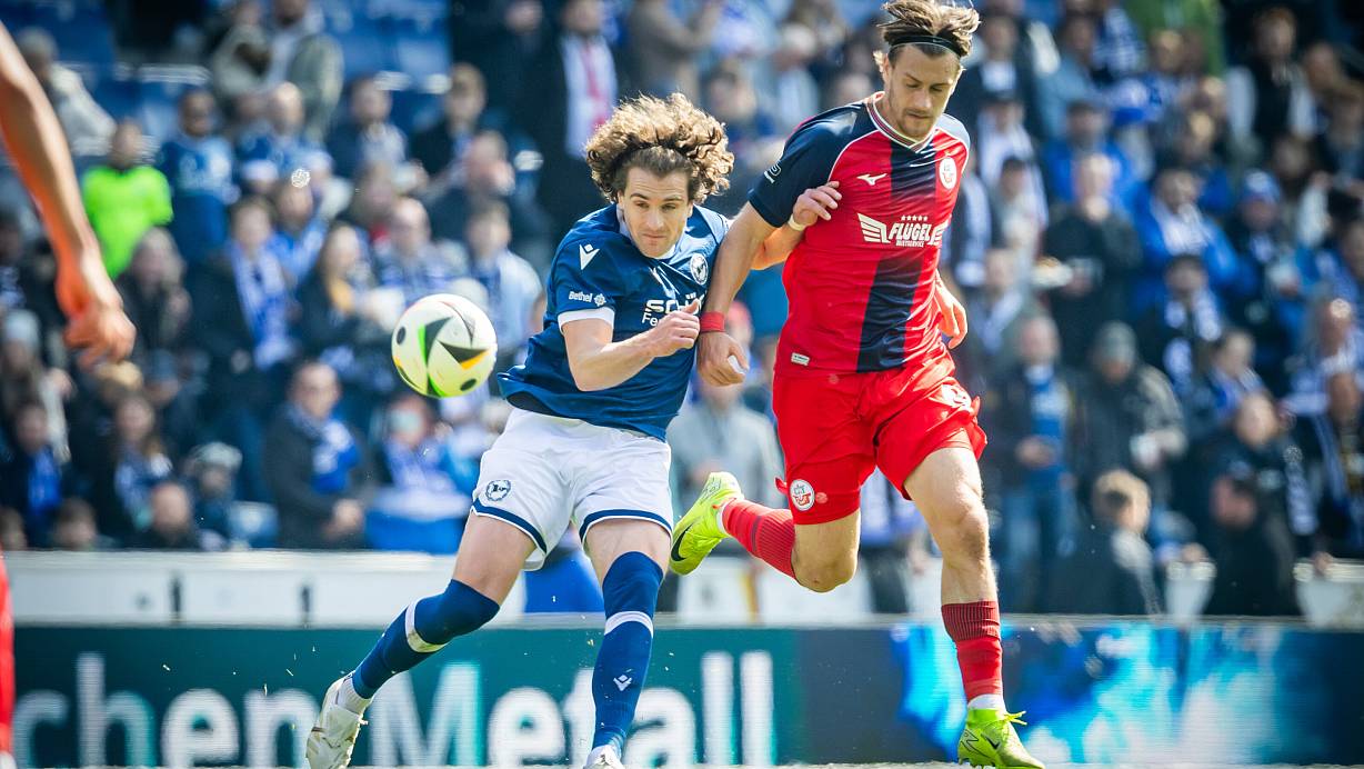 Arminia-Kapitän Mael Corboz (l.) ragte im Spitzenspiel gegen Hansa Rostock heraus. | © Sarah Jonek