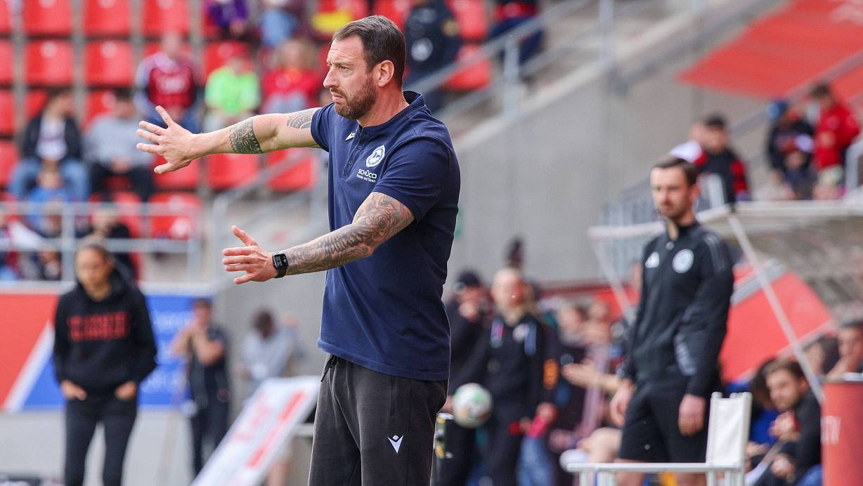 Arminia-Trainer Mitch Kniat verfällt trotz des überzeugenden Sieges in Ingolstadt nicht in überbordende Euphorie. | © IMAGO/Eibner