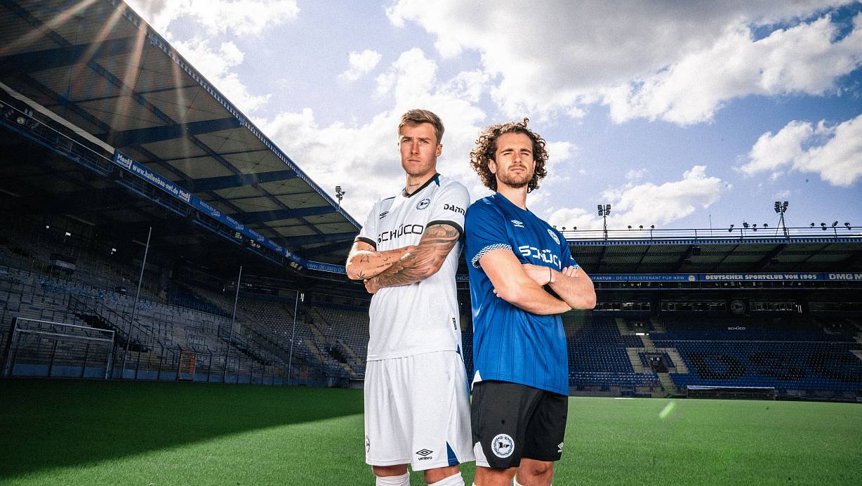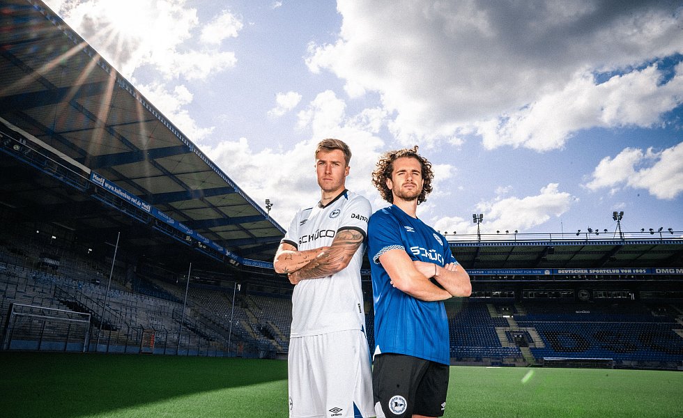 Bielefeld. Bereits am Mittwochabend hatte Arminia Bielefeld seine Fans mit einem kurzen Video auf den eigenen Kanälen angefixt. Am Donnerstagmorgen ließ der DSC die Katze dann aus dem Sack und präsentierte offiziell sein neues Heim- und Auswärtstrikot.