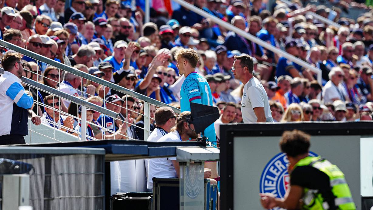 Der 24-Jährige sieht innerhalb weniger Minuten eine vollkommen vermeidbare Gelb-Rote Karte. Ersatzkeeper Leo Oppermann hält den 2:0-Sieg in Kiel fest.
