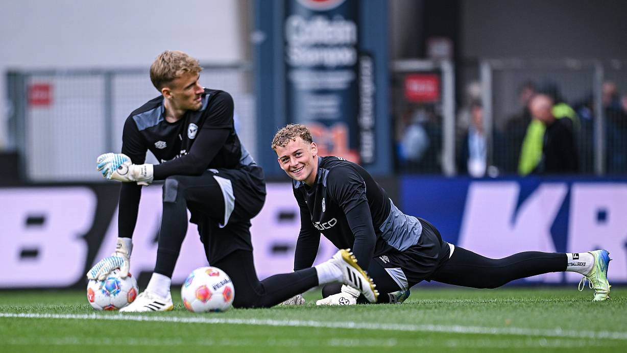 Arminia-Keeper Jonas Kersken (l.) hatte gegen Schalke als Backup Philip Hildesheim (r.) auf der Bank sitzen. | © KROEGER/RHR-FOTO