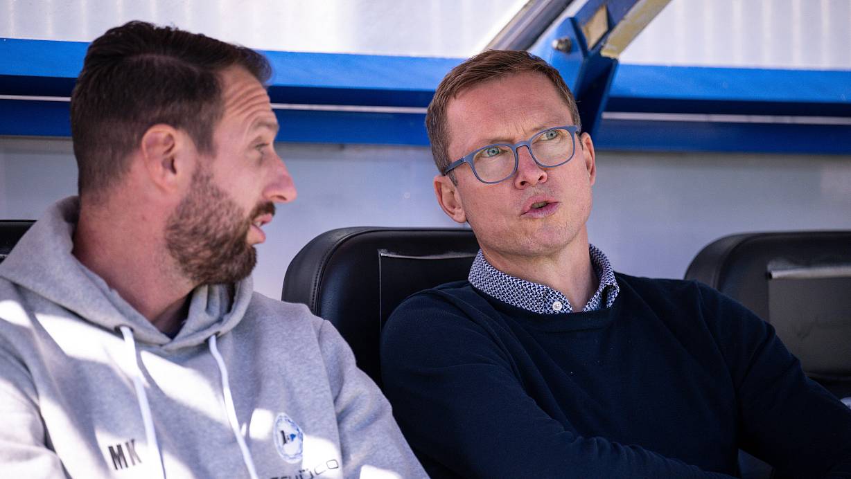 Für Trainer Mitch Kniat (l.) und den DSC Arminia ging es zuletzt wieder bergauf. Sportchef Michael Mutzel (r.) weiß, woran das liegt. | © Teresa Kroeger