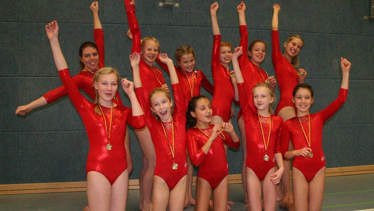 Noch dominanter holten sich die Spvg.-Turnerinnen in der Nachwuchsliga 1 die Krone. Mehr als 23 Punkte trennte das Steinhagener Team am Ende von der Konkurrenz aus Rheda und Werther. Trainerin Kirsi Rohmeier staunte nicht nur über diesen gewaltigen Vorsprung. „Mit welcher Abgeklärtheit Hanna Busche, Maike Landwehr, Mette Althof und Lilly-Marie Damm ihre Übungen an den Geräten präsentierten, erinnerte eher an Turnprofis als an kleine achtjährige Mädchen", sagte sie.