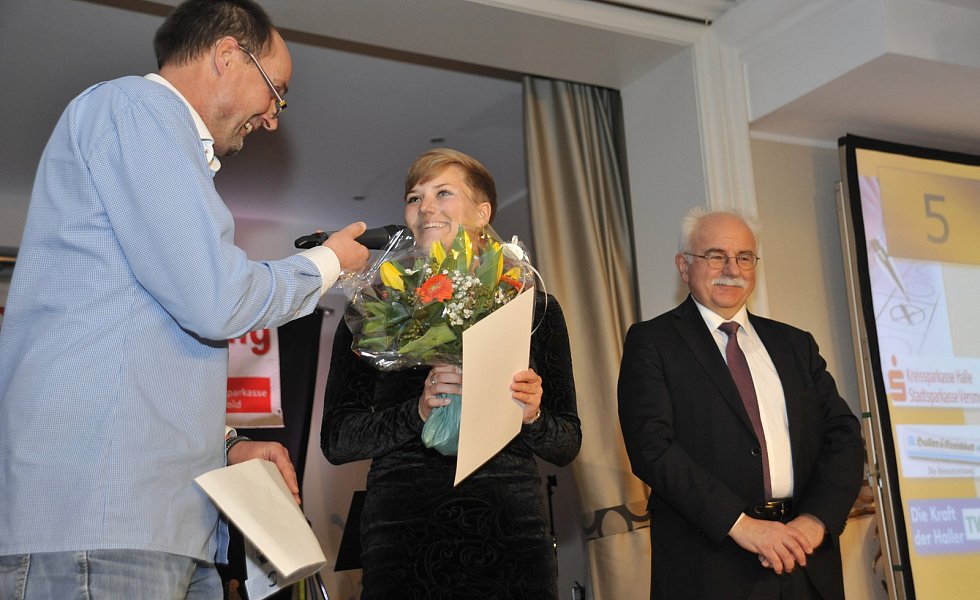 Die zweitplatzierte Celestina Kansy (22) hatte ihre größten Erfolge in der Mastersklasse gefeiert. Zweimal gewann sie DM-Gold in der Altersklasse 20 und verwies damit Anna Rzeha (25) bei der Wahl auf den dritten Rang. Die Volleyballerin des SC Halle führte ihre Mannschaft zum Aufstieg in die Verbandsliga. Im Interview verriet Rzeha, was sie außer Baggern und Pritschen am liebsten tut: „Ich backe und koche sehr gern."