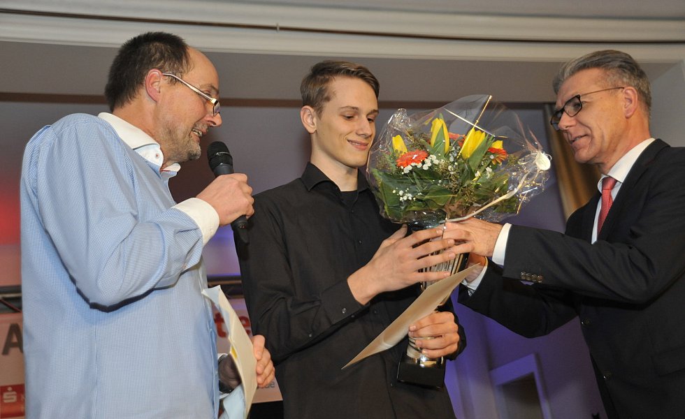 18 Schläge für 18 Bahnen – mit diesem Kunststück hatte Minigolfer Lukas Neumann (22) seiner Mannschaft 1. MGC Mainz den Weg zum deutschen Mannschaftsmeistertitel geebnet. Der Künsebecker wurde mit Platz zwei belohnt. Einen Schläger, aber 200 bis 300 Bälle umfasst seine Ausrüstung. „Einige Mannschaftskameraden besitzen bis zu 3000", berichtete Neumann dem staunenden Publikum. Auf dem Bronzerang landete Leichtathlet Aaron Thieß (16). Der Kreisrekordler im Stabhochsprung vom LC Solbad Ravensberg war 2016 Jahr noch als Talent des Jahres ausgezeichnet worden.