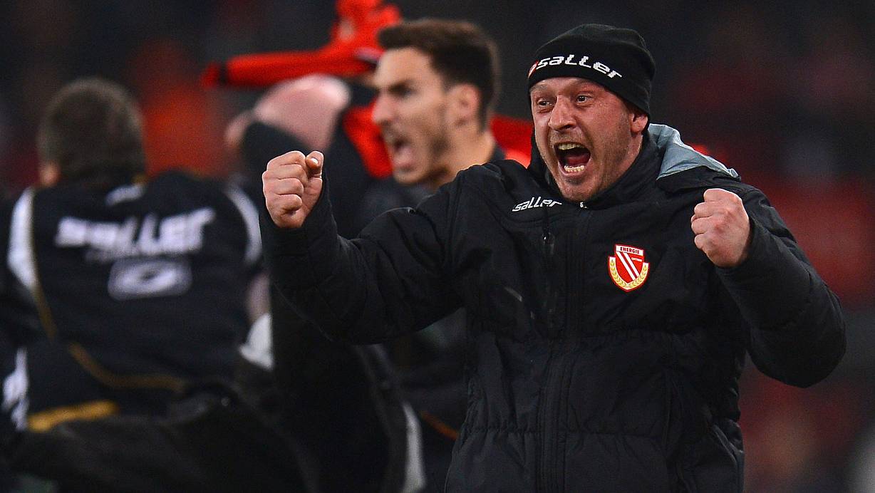 Emotional: Jörg Böhme bejubelt 2014 als Trainer von Energie Cottbus einen Treffer seiner Mannschaft. | © Lars Baron/Getty Images