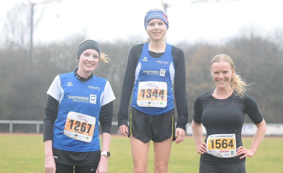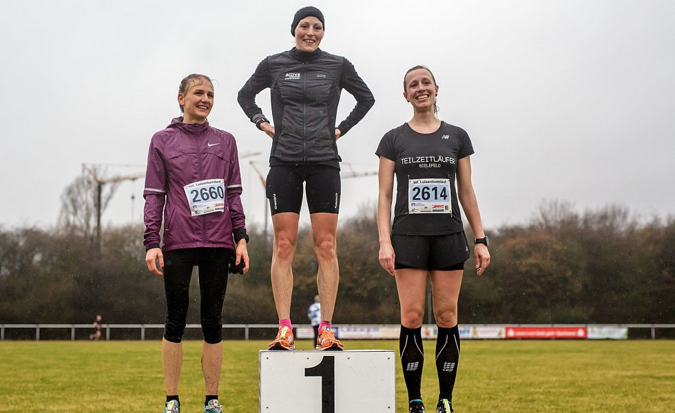 Die Wertheranerin Franzi Bossow hatte vor dem Startschuss Bedenken. Ob die Kräfte wohl reichen würde? Eine Magen-Darm-Erkrankung hatte ihr tags zuvor zu schaffen gemacht. „Doch irgendwann rollte es." Und wie: 1:24:46 Stunden bedeuteten für sie auf „rutschigem, matschigem" Geläuf eine neue persönliche Bestzeit bei der »Luise«. „So kann es weitergehen", befand Bossow, die Jessica Volkmann (Teilzeitläufer Bielefeld/1:29:12) und Vanessa Ohm (TSVE Bielefeld/1:30:41) auf die Plätze verwies. Auch sie hat den »Hermann« Ende April im Blick, wo sie ihre persönliche Bestzeit knacken möchte.