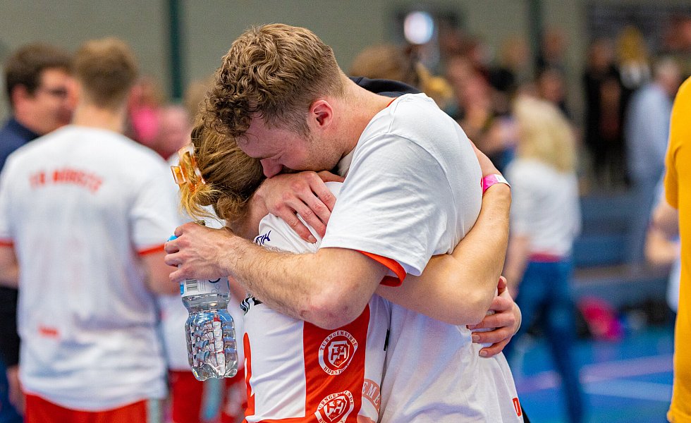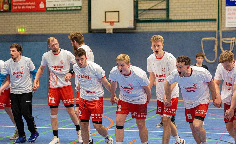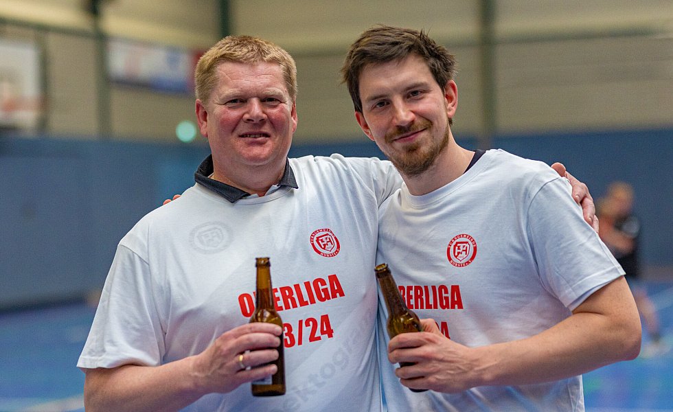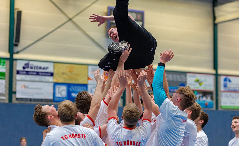 Etwas Grundsätzlicher wurde der Vorstand der TG Hörste. Thomas Wöstmann (sportlicher Leiter der TGH) sagte: „Zunächst muss ich feststellen, dass ich keine Ahnung vom Handball habe. Denn vor der Saison habe ich gesagt: Alles zwischen Platz zwei und zehn ist möglich. Da haben mich die Jungs – Mannschaft und Trainerteam – eines Besseren belehrt. Man muss vor allem einen Riesenhut ziehen vor der Art und Weise, mit welcher Konsequenz sie ihre Chance genutzt und ihren erfolgreichen Weg durchgezogen haben. Dieser Erfolg gehört zu 98 Prozent Mannschaft und Trainern, aber auch zu zwei Prozent Vorstand und gesamtem Umfeld, die dafür sorgen, dass es den Jungs einfach gefällt, in Hörste Handball zu spielen. Das wird spannend für den Verein, aber auch für die Oberliga: zu sehen, wie sich in dieser Klasse eine Mannschaft behaupten kann, die einfach aus Spaß am Handball an einem Strang zieht, und in der es keinem um Kohle geht."