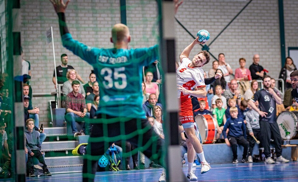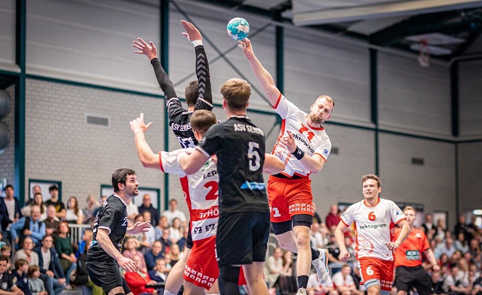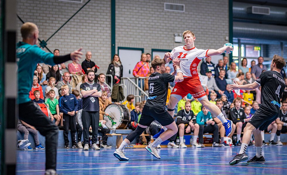 Die Hörster erwischten einen guten Start in die zweiten Halbzeit und verschafften sich mit zwei Treffern binnen 17 Sekunden (Schäper und Silas Burstädt) zum 16:13 (34.) erstmals etwas Luft. Aber Senden konterte die erste Hörster Vier-Zähler-Führung (Tarners neuntes Tor zum 17:13) mit vier Treffern innerhalb von vier Minuten zum 17:17 (40.). Die Rothosen warfen danach mehrfach ein Zwei-Tore-Plus heraus, aber Senden verkürzte bis zum 22:23 immer wieder auf ein Tor.