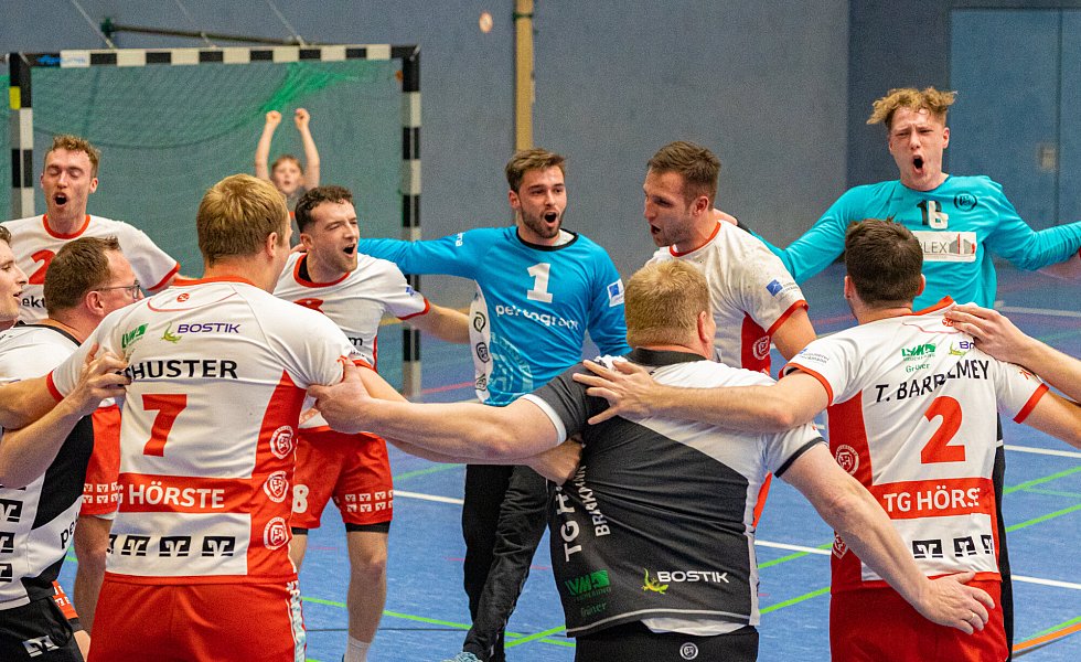 Senden/Hörste. Die TG Hörste hat das Meisterstück vollendet: Mit einem schwer erkämpften 30:28 (12:12)-Erfolg beim ASV Senden steigen die Verbandsliga-Handballer bereits einen Spieltag vor Saisonschluss in die Oberliga auf und gehören in der kommenden Serie erstmals der höchsten Männer-Spielklasse im Landesverband Westfalen an. Ein sensationeller Erfolg, nachdem die Mannschaft nach dem Verlust dreier Stammkräfte zu Saisonbeginn allein den Klassenerhalt als Ziel ausgegeben hatte.