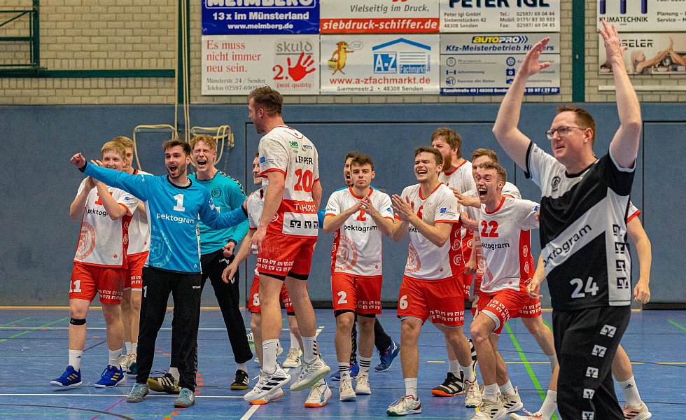 Nachdem Mika Kösters und Tarner auf 25:22 erhöht hatten, zog Senden die grüne Karte (53:03 Minuten). Nach Kösters Treffer zum 26:23 erhielt Daniel Barrelmeyer eine Zeitstrafe (56.), aber der beste Torschütze der Verbandsliga behielt beim Siebenmeter zum 27:24 die Nerven (57.). Als danach die junge Flügelzange Burstädt/Kösters noch zweimal zuschnappte und auf 29:25 (59.) erhöhte, war die Partie entschieden.