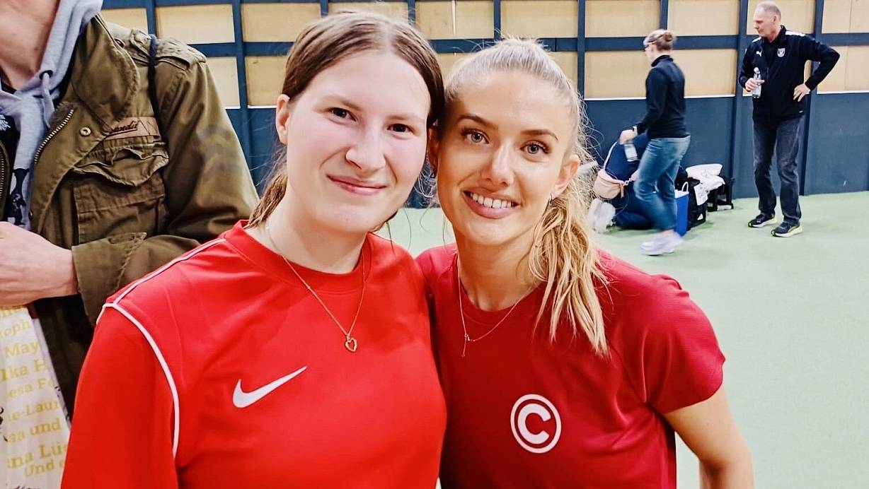Alica Schmidt (r.) ist der größte Promi der deutschen Leichtathletik. Der Borgholzhausenerin Linnea Haschke (l.) ist es gelungen, ein Erinnerungsfoto mit der bekannten Sportlerin zu machen. | © Linnea Haschke