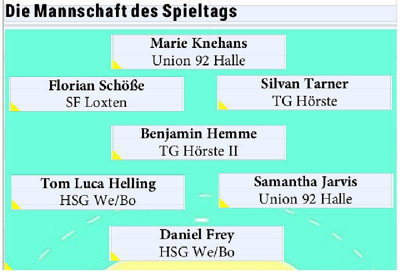 Altkreis Halle. Das Handball-Wochenende hatte im Altkreis Halle für einige Spielerinnen und Spieler wieder herausragende Momente zu bieten. Diese sieben Aktiven haben uns dieses Mal besonders überzeugt und sich deshalb eine Nominierung für unsere Mannschaft des Spieltags verdient.