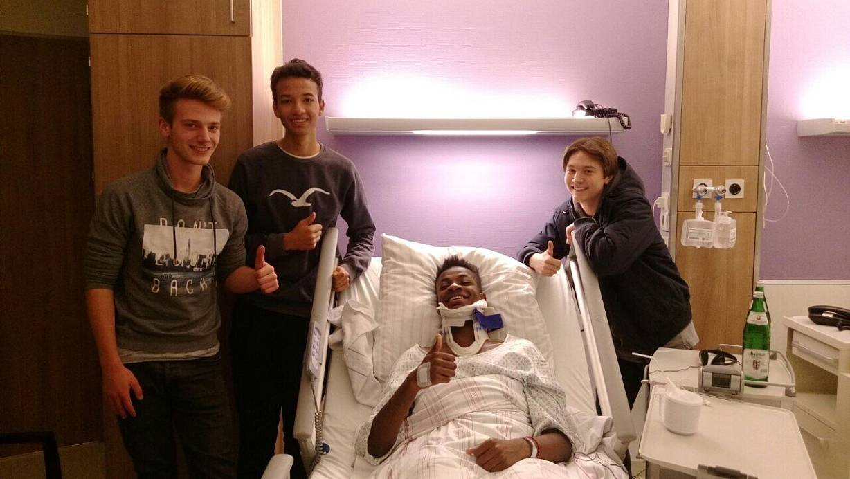 Jean-Chris Lawson und seine Freunde Yannick Philipp, Thomas Gaesing und Liam Marshal (v.l.). Das Foto entstand vor der missglückten Operation vor knapp neun Jahren. Der verunglückte Fußballer will kein aktuelles Bild von sich in der Zeitung sehen. | © Johnny Dähne