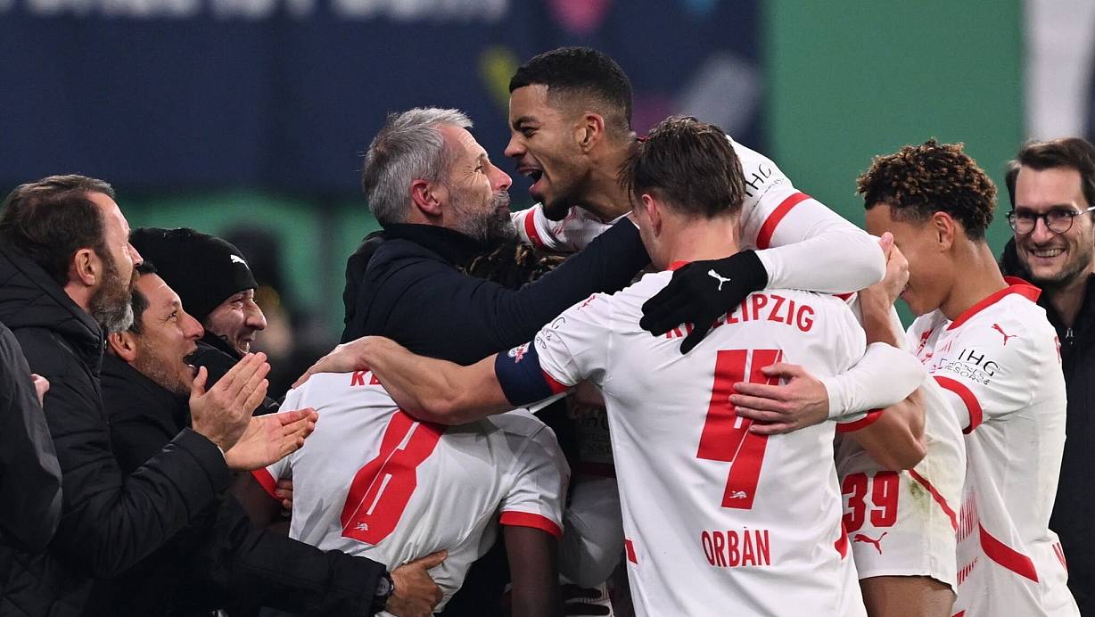 Die Szene nach dem Traumtor von Loïs Openda sprach Bände: Alle Spieler von RB Leizpig rannten zu Trainer Marco Rose und herzten ihn. Mit dem 3:0 (1:0) im DFB-Pokal-Achtelfinale gegen Eintracht Frankfurt hat RB Leipzig nicht nur ein eindrucksvolles Zeichen in der Krise gesetzt, sondern auch dem beliebten Rose vorerst den Job gerettet.