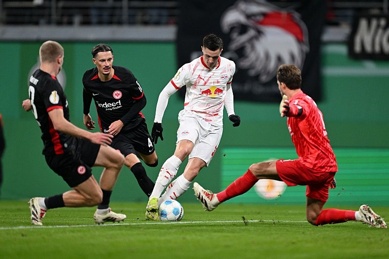 Benjamin Sesko (31.) und Openda (50., 58.) markierten vor nur 37.187 Zuschauern - Saison-Minusrekord - die Tore für die Sachsen und sorgten für den verdienten Einzug ins Viertelfinale. Von den in der Fußball-Bundesliga seit Wochen überragenden Frankfurtern war dagegen überraschend wenig gekommen.