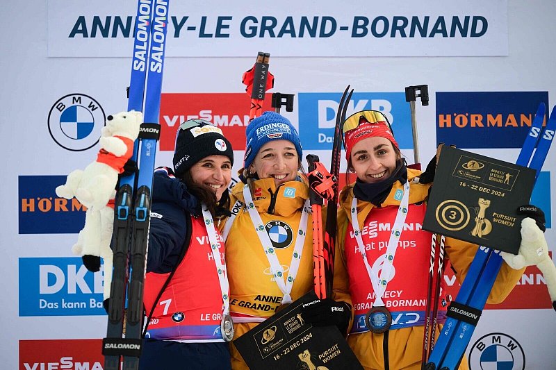 Biathletin Selina Grotian fiel nach ihrem Premierensieg Franziska Preuß in die Arme, ehe sie ganz cool ihr erstes Siegerinterview gab. Mit dem ersten Doppelerfolg seit fast fünf Jahren krönten die beiden Skijägerinnen das erfolgreichste Wochenende der Saison, nachdem zuvor Danilo Riethmüller im Massenstart als Zweiter mit dem ersten Weltcup-Podium seiner Laufbahn in Le Grand-Bornand für eine faustdicke Überraschung gesorgt hatte.