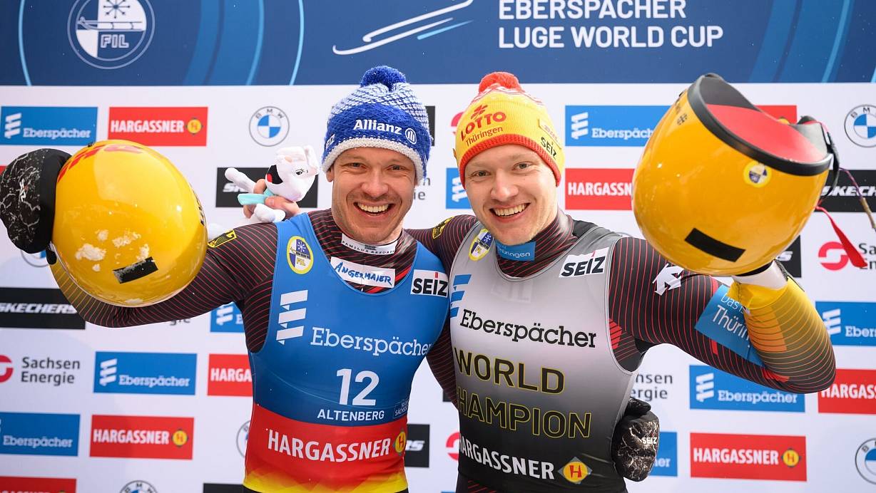 Im Männer-Doppelsitzer kamen die Rekord-Olympiasieger Tobias Wendl/Tobias Arlt nach ihrem 55. Weltcup-Sieg vor einer Woche in Sigulda in Altenberg auf Platz zwei. Die Bayern lagen 0,123 Sekunden hinter den Letten Martins Bots/Roberts Plume. Fünfte wurden Hannes Orlamünder/Paul Constantin Gubitz; Rekordweltmeister Toni Eggert kam mit seinem neuen Partner Florian Müller auf Platz sieben.