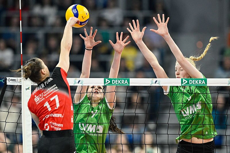 Es war ein Wirkungstreffer, der Münster verunsicherte. Die favorisierten Dresdnerinnen zeigten ihre Klasse im zweiten Satz dagegen von Beginn an und ließen den Gegnerinnen nicht den Hauch einer Chance. «Im ersten Satz hat man gemerkt, da ist die Nervosität noch da», sagte Dresdens Sarah Straube bei Dyn. «Aber wir haben das dann super gewuppt.»