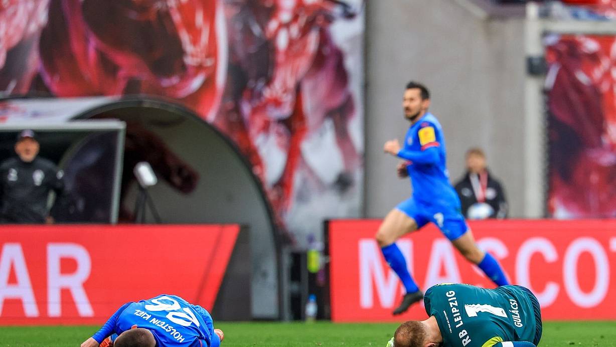 In der 62. Minute waren der aus seinem Tor geeilte Gulacsi und Zec in vollem Lauf zusammengeprallt. Beide Spieler verloren nach Angaben ihrer Trainer kurz das Bewusstsein. Während der minutenlangen Behandlung herrschte bedrückende Stille im Stadion, Gulacsi wurde schließlich unter Applaus auf einer Trage vom Spielfeld transportiert. Benjamin Sesko (74. Minute) egalisierte kurz darauf die Kieler Führung durch Shuto Machino (44.).