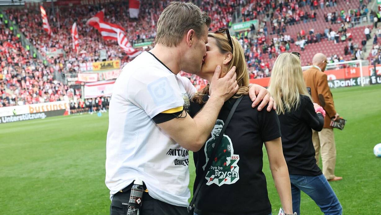 «Ich bin unfassbar dankbar, dass es so zu Ende geht», sagte Brych mit leicht feuchten Augen. Für seine Ehefrau Andrea Brych-Birgmair gab es auf dem Rasen einen Kuss. Und Brych selbst machte Selfies mit seinen Liebsten.