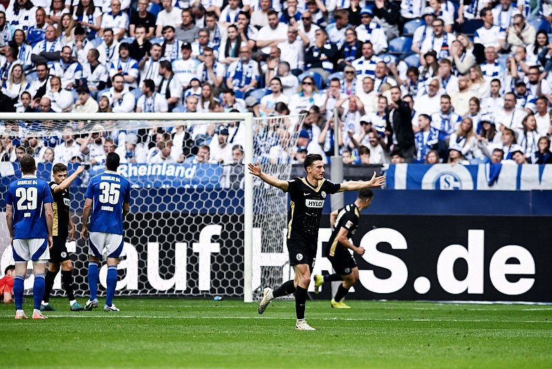 Den Hamburgern und Kölnern in die Bundesliga folgen könnte die SV Elversberg, die mit 2:1 (1:0) beim FC Schalke 04 siegte und damit Rang drei festigte. Am Donnerstag (20.30 Uhr/Sat.1 und Sky) wartet bereits das Relegations-Hinspiel gegen den 1. FC Heidenheim, der in der Bundesliga Rang 16 belegte. Vor heimischem Publikum in Spiesen-Elversberg kann das Team von Horst Steffen dann im Rückspiel am 26. Mai eine Sportsensation perfekt machen.