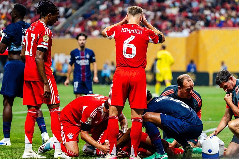 Im Viertelfinale bei der Club-WM gegen Champions-League-Gewinner Paris Saint-Germain hatte PSG-Torhüter Gianluigi Donnarumma den Münchner Musiala in einem folgenreichen Zweikampf schwer verletzt. Der Bayern-Profi erlitt einen Wadenbeinbruch und eine Ausrenkung des Sprunggelenkes. Musiala war nach der Rückkehr aus den USA am linken Bein operiert worden und wird monatelang ausfallen. Die Bilder am Club-Gelände waren die ersten öffentlichen nach der Operation. Laut Vereinsangaben war der Eingriff erfolgreich verlaufen.